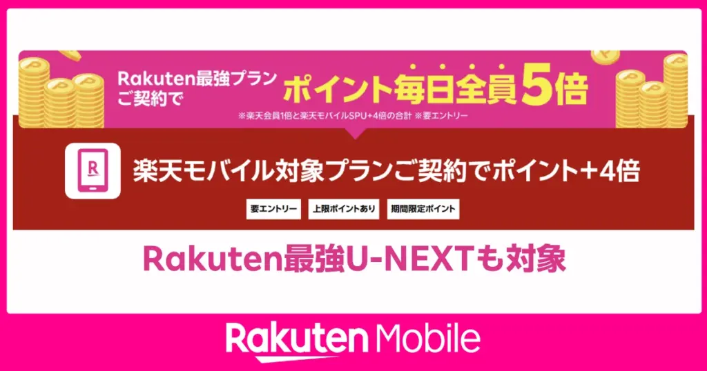 【SPU改定】楽天モバイル新プラン「Rakuten最強U-NEXT」もSPU+4倍対象に!キャリア決済と合わせて最大+6倍を狙う方法