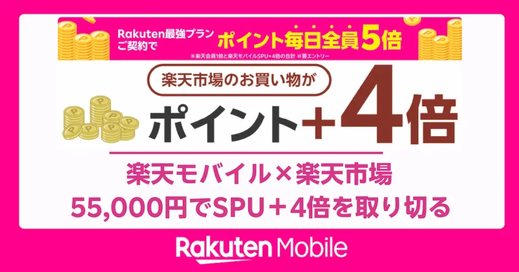 楽天モバイル契約で楽天市場ポイント+4倍。上限2,000ptの攻略法と税込55,000円目安の買い方、併用で倍率UP、エントリー手順まで現役社員が解説。 -