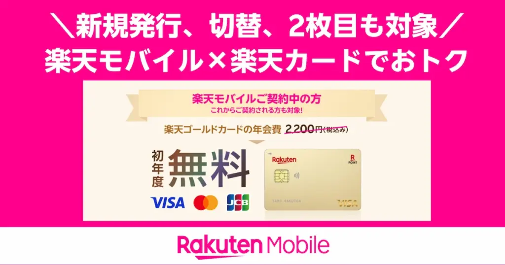 楽天モバイルユーザー限定で「楽天ゴールドカード」の初年度年会費2,200円が無料。申込期間は2025年10月27日10:00~12月25日9:59。特典と手順を解説。 -
