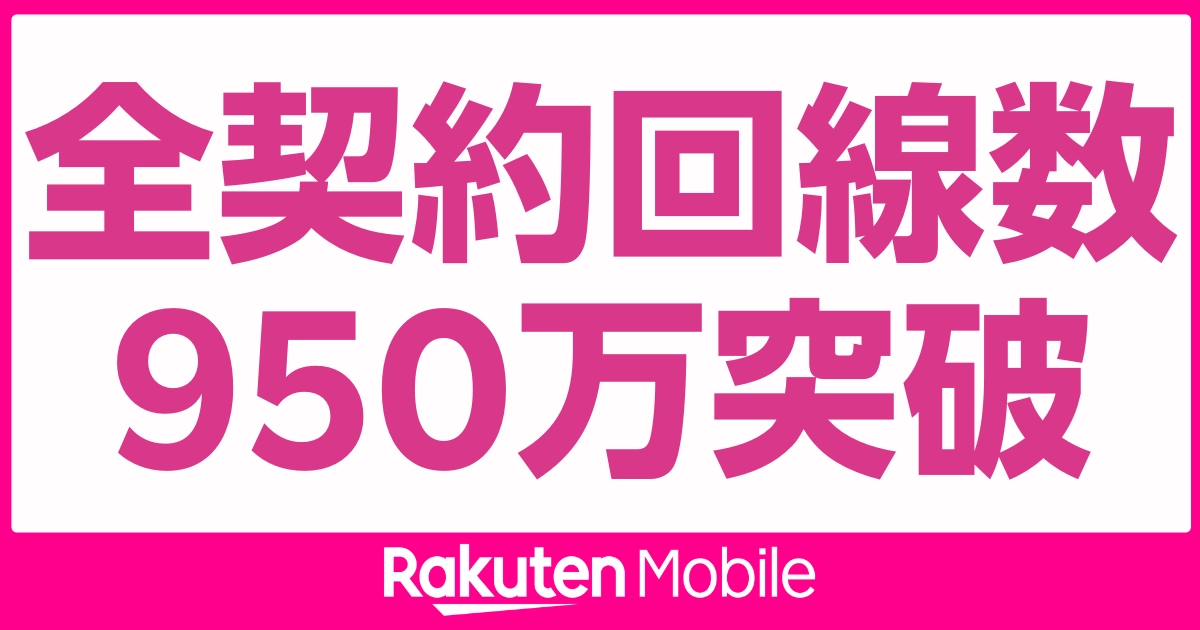 - 【速報】 楽天モバイルの契約回線数が、2025年11月7日時点で950万回線を突破しました 。