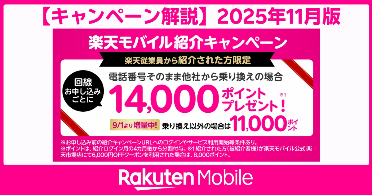 従業員紹介キャンペーン|MNP 14,000pt/新規 11,000pt